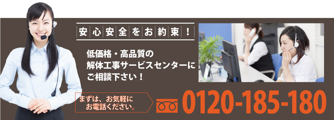 ・建設業、施工管理士、ユンボーなどの重機の操作ができる車両系建物機械運転技能講習修了証などの免許、資格、許可があるから 安心してご依頼下さい。・明朗会計でわかりやすい料金体系にしております。解体工事がはじめてで相場がわからず他社との見積り比較をされたい方も多いかと思います。当社では見積りを安く、できるだけ最安値、激安価格になるように努力いたします。見積り価格の内訳もわかりやすくし、追加費用もありません。・建物は、あらゆる工作物、構造物、木造、木造瓦葺き、木造モルタル、木造カラーベストぶき、トタン、鉄骨、鉄骨造、鉄筋、コンクリートにご対応します。・各種届出に必要な書類、契約書、申請、提出書類、登録などサービス内で行います。・ライフラインの撤去手続きも、電線の撤去は電力会社へ撤去工事の連絡をいたします。水道の閉栓の手続きも行います。ガスに関しましては、LPガスの際は着工前日までに回収手続きをお願いいたします。・解体する建物内に、処分に困る荷物、不用品が残ってしまう場合はご相談ください。・現地調査、現場調査が終了後、2~3日ほどでお見積りをお届けいたします。・スケジュールが合わない場合、契約書を郵送して契約を交わすことも可能です。・熟練の管理者、作業員が徹底した安全管理を行います。・振動、騒音対策、粉じんの対策を行うためにしっかりと養生を行います。・ご近隣、ご近所の方へのご挨拶、クレーム時の対応など的確に行い、住民の方へのご迷惑を最小限にいたします。また、工事の概要、工期を細かくお知らせし解体工事により与えてしまうかもしれない被害について事前にお伝え致します。・予定した工期が遅れないように期間内で作業を完了するように勤めます。・自然災害の影響や、地中埋設物の発見などで工期延長がやむを得なくなる場合がありますが、都度ご連絡させていただきます。・敷地外の清掃作業もきちんと行い、作業員の服装や態度についても清潔、誠実を保つようにしっかりと管理いたします。・建物の解体自体が済んだあと、敷地内のゴミを回収して前面道路と共に清掃し、整地作業(敷地の凸凹を滑らかにするため重機で踏み固めていく作業)・お支払いが終わりましたら、建物滅失登記に必要な滅失証明書をお渡しいたします。